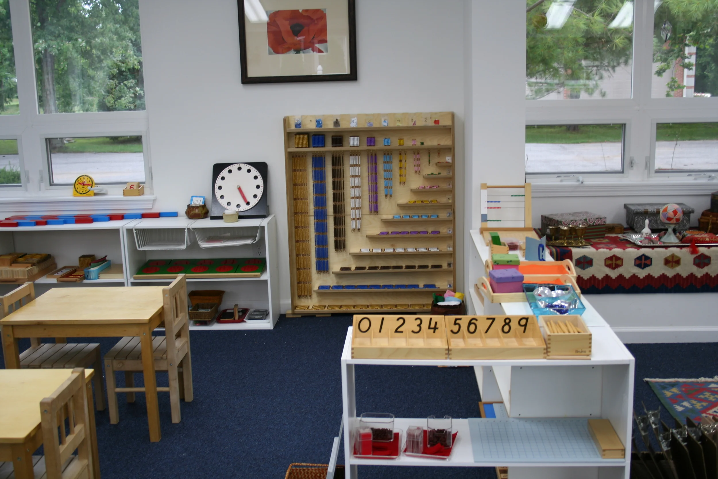 The Montessori math materials, through concrete manipulative materials, allow the child to internalize the concepts of number, symbol, sequence, operations and memorization of basic facts. Development of the concept of the four basic mathematical operations: addition, subtraction, division, and multiplication happen through work with the Golden Bead Material and other materials introduced by Dr. Maria Montessori. These processes tend to develop in the child a much deeper understanding of mathematics. The children are taught to tell time. They are introduced to money, fractions and story problems. They learn multiplication tables with the help of bead chains from the bead cabinet.